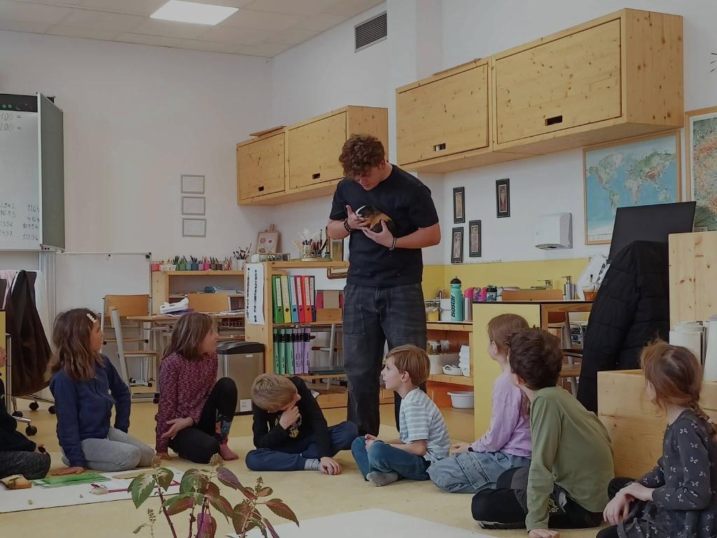 Společně s dětmi konzultoval, jak správně vybavit ohrádku, ve které budou morčátka bydlet a názorně ukázal, co všechno je potřeba zajistit každý den, aby byla spokojená a v bezpečí. Děti se aktivně zapojovaly, měly spoustu dotazů a sdílely své vlastní příběhy. Vznikl tak prostor pro téměř dvě hodiny vzájemného naslouchání a učení.